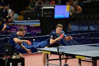 Een internationale professionele trainingsgroep die twee (deels drie) trainingssessies per dag doet. Naast de spelers van het TTBL-team van ASV Grünwetters-bach trainen hier professionele spelers van over de hele wereld.